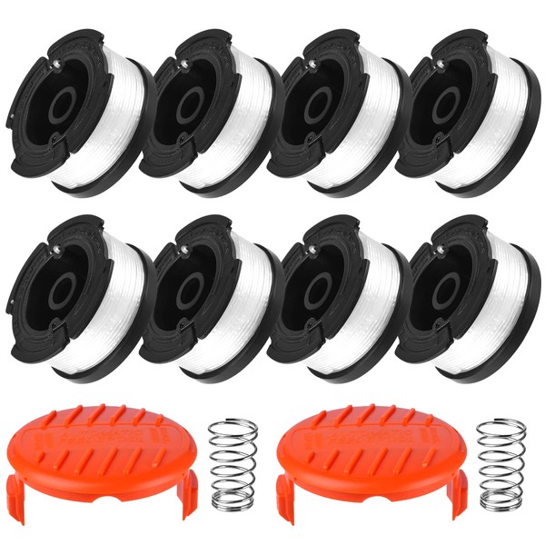 Trimmer Spool Replacement for Black + Decker, 30ft 0.065" Trimmer Line, Auto Feed Weed Wacker String (8 Pack Spool+2 Spool Cap+2 Spring)
