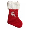 This pretty red Christmas stocking has a reindeer front and plush white faux fur topper. It is perfect for your holiday decorating!