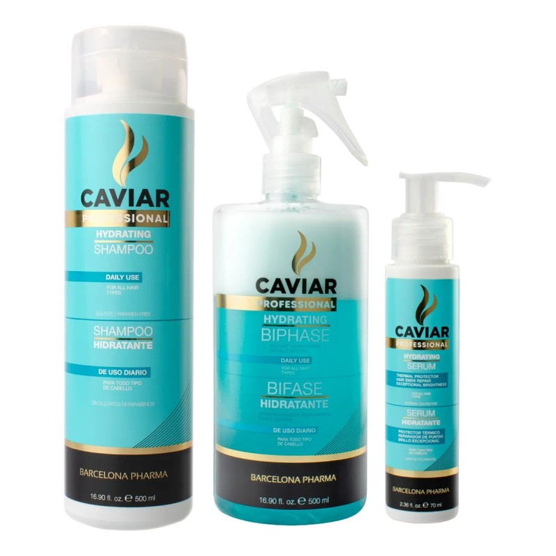 Este trío es perfecto para quienes buscan un tratamiento intensivo que combine nutrición, reparación y protección contra daños causados por el calor y el ambiente. Su fórmula premium con extracto de caviar ayuda a restaurar el cabello dañado y previene la resequedad y el quiebre.