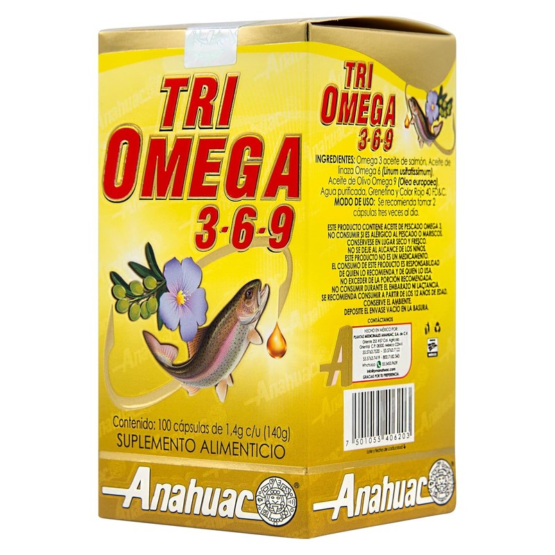 TRIOMEGA 3, 6, 9, Suplemento Alimenticio, Salud Cardiovascular, 100 capsulas, Anahuac. - Producto Original de Alta Calidad, Entrega Rápida y Segura, G