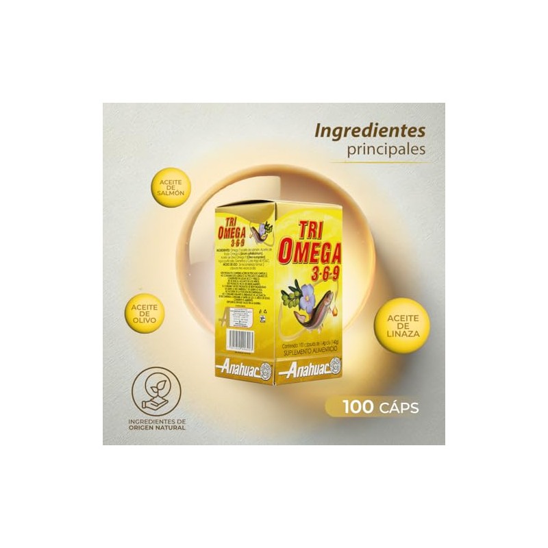 TRIOMEGA 3, 6, 9, Suplemento Alimenticio, Salud Cardiovascular, 100 capsulas, Anahuac. - Producto Original de Alta Calidad, Entrega Rápida y Segura, G