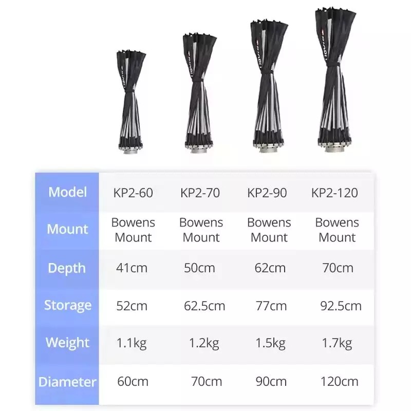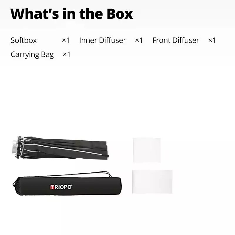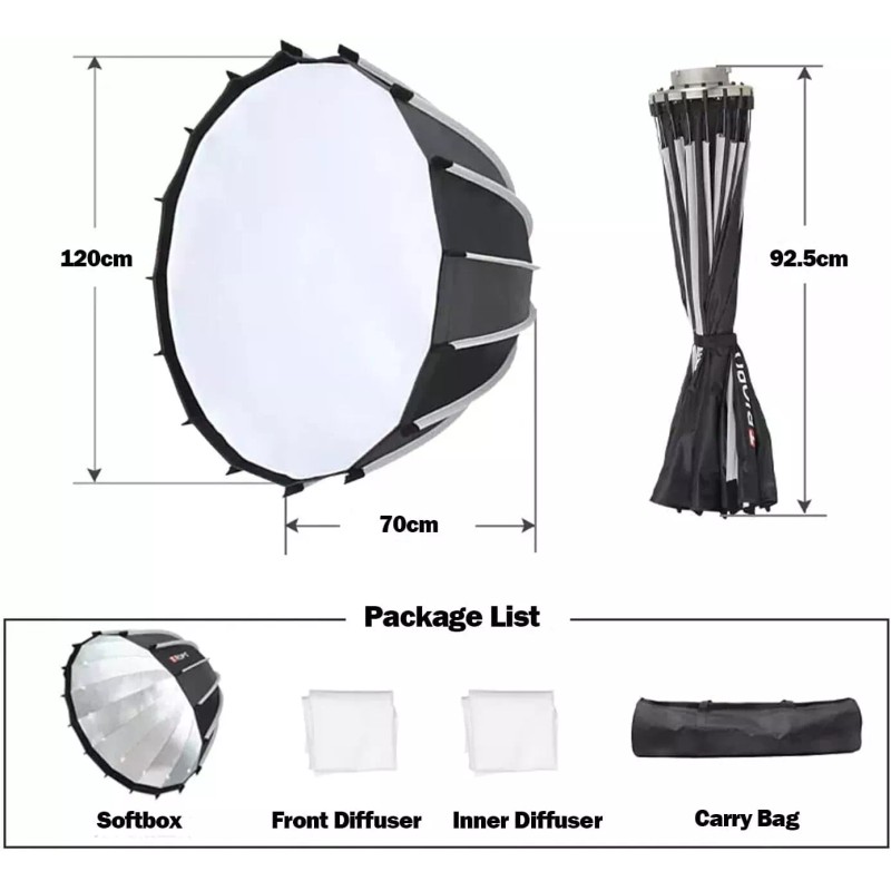 - Softbox/Diffuser Size: 90cm/35.4"; 120cm/47.2"