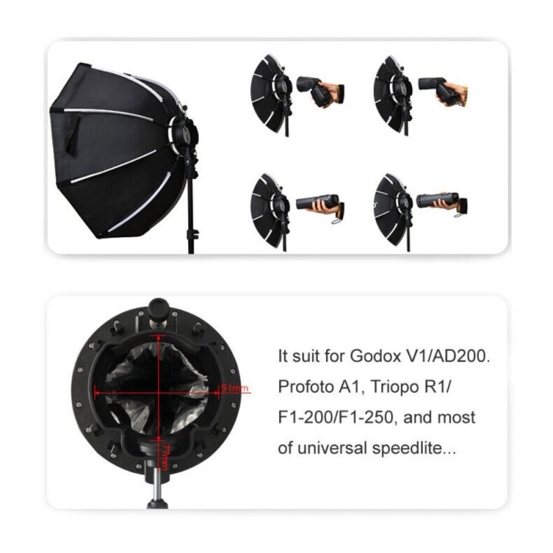 Triopo KX120 Softbox Upgrade Version Portable Softbox Speedlite Octagon Umbrella Softbox Outdoor Flash Softbox for Godox AD200Pro AD200 V860III V1 TT600 TT685 V860 and Other Camera Speedlight (with Universal Chuck)