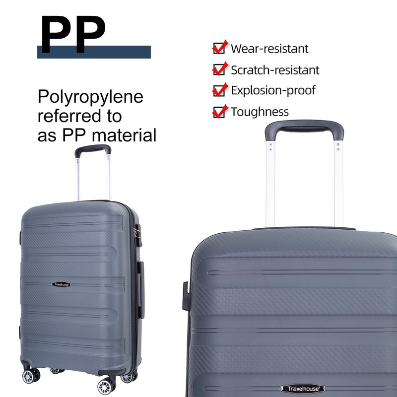 - 【3 Piece Hard Luggage Sets】: Tripcomp 3 piece luggage set comes in size 20 inch carry on, 24 inch checked luggage and 28 inch checked luggage, airline size requirements. Made of lightweight and durable PP material, TSA Lock Approved, with an impact-resistant hard shell, that's abrasion, and water-resistant.