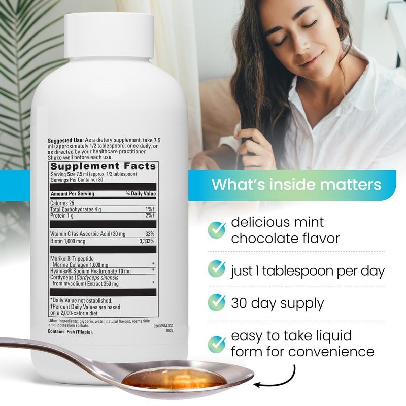 Tripeptide Marine Collagen with Hydrolyzed Peptides - Advanced Anti-Aging & Skin Renewal Supplement for Hair, Skin, and Nail | Mint Chocolate Flavor with 30 Liquid Servings