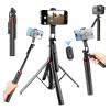 3. Portátil ajustable extralargo: el trípode para teléfono portátil se puede extender de 29,5 cm a 180 cm sin girar ni bloquear, simplemente estire la varilla y podrá elegir la altura que más le convenga. El rango de instalación del soporte para teléfono móvil es de aproximadamente 6.5 a 9.5 cm y es compatible con la mayoría de los teléfonos móviles. Este ligero trípode de viaje pesa aproximadamente 443 gramos y tiene una longitud plegada de 29,5 cm, lo que lo hace ideal para viajar.