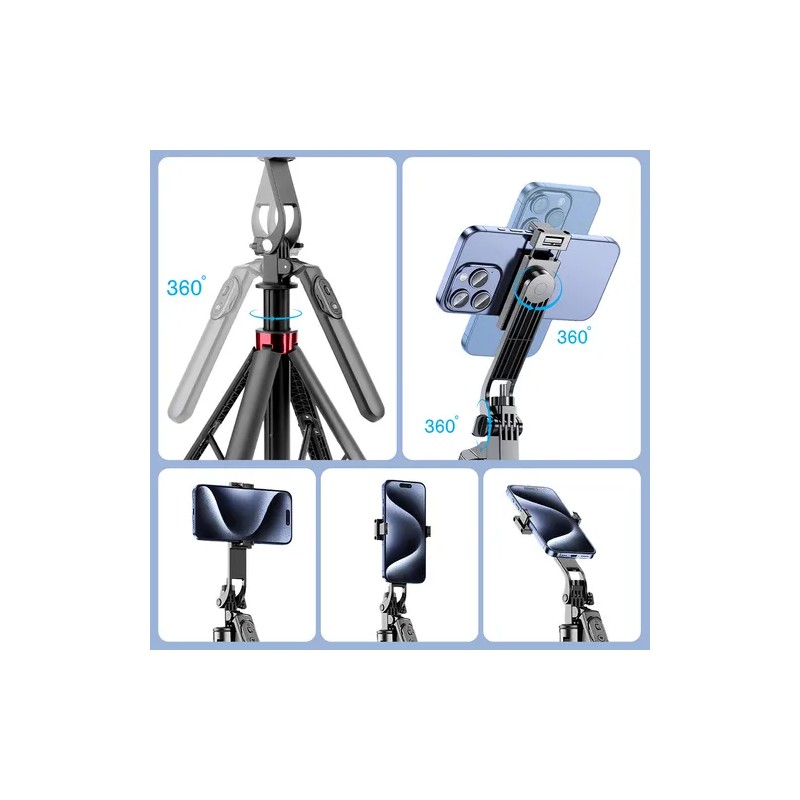 5. Multiusos: Es perfecto para grabación de vídeo, fotos grupales, vlogs, aventuras, fotos familiares, reuniones presenciales, online, etc. Se puede utilizar como soporte para teléfono móvil, palo para selfies, soporte para transmisión en vivo de teléfono móvil y estabilizador de cámara.