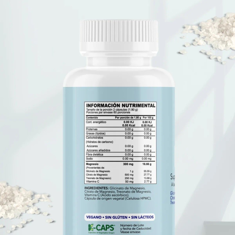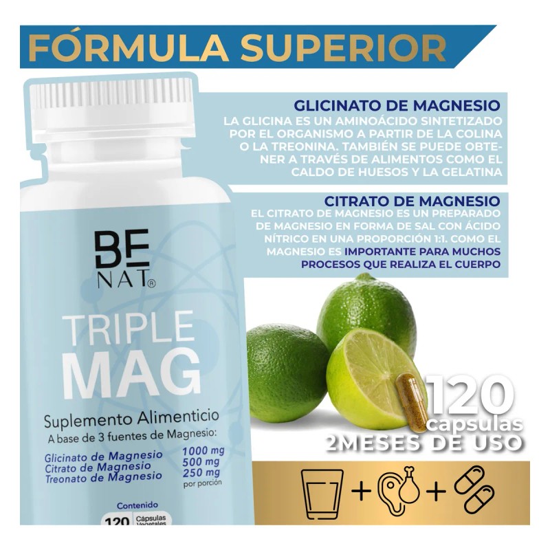 Triple Magnesio Glicinato Citrato Treonato Benat 900mg 120c Sabor Sin Sabor