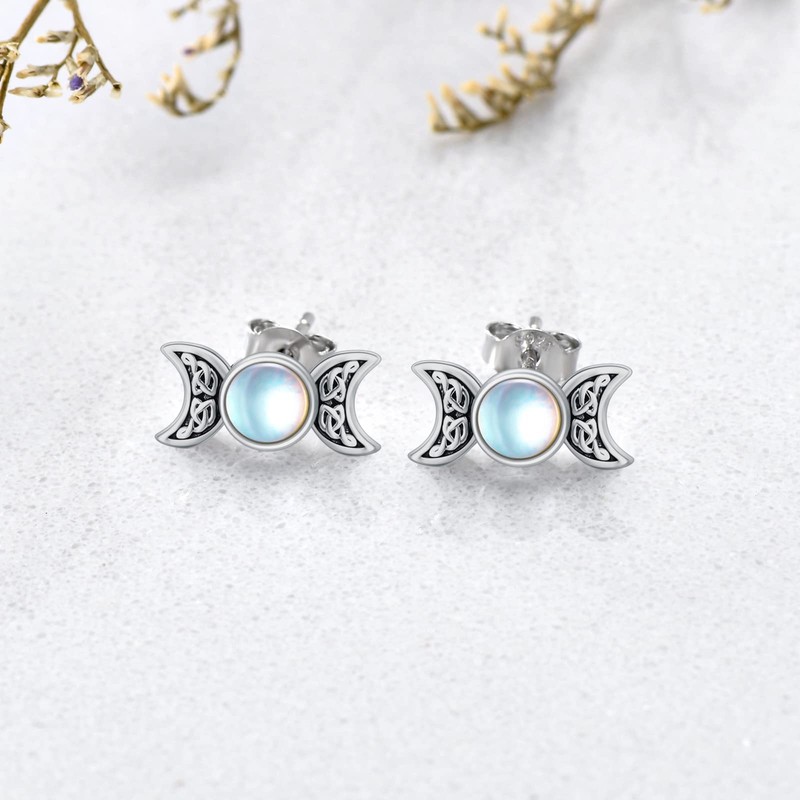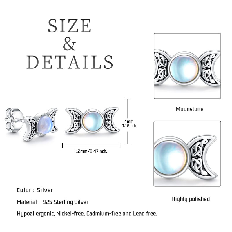 - Moon Jewelry Material:The triple moon goddess earrings for women are made of 925 sterling silver with moonstone. Suitable for long-term use, without allergic ingredients.