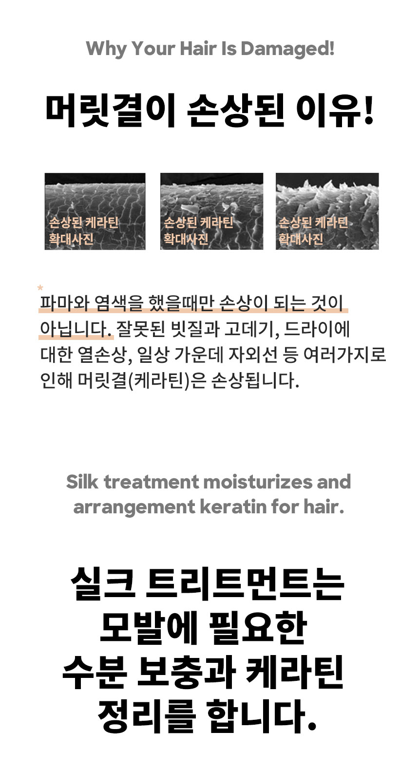 - All ingredients: Purified water, cetearyl alcohol, dimethicone, propylene glycol, behentrimonium chloride, isopropyl alcohol, amodimethicone, C12-14Sec-phareth-7, cyclopentasiloxane, aminopropyl dimethicone, hydrochloride Rollized silk, glycerin, sodium benzoate, panthenol, argan kernel oil, tocopheryl acetate, hydrolyzed soy protein, hydrolyzed corn protein, hydrolyzed wheat protein, dipropylene glycol, zein, hydrolyzed Desilk ethyl ester, ethanol, hydrolyzed keratin, milk protein extract, trifolia extract, mulberry leaf extract, Seoksappo root/stem extract, pine needle extract, Rehmannia glutinosa root extract, aloe vera leaf extract, medicinal wheat extract, butylene glycol Cole, Disodium EDTA, Menthol, Fragrance