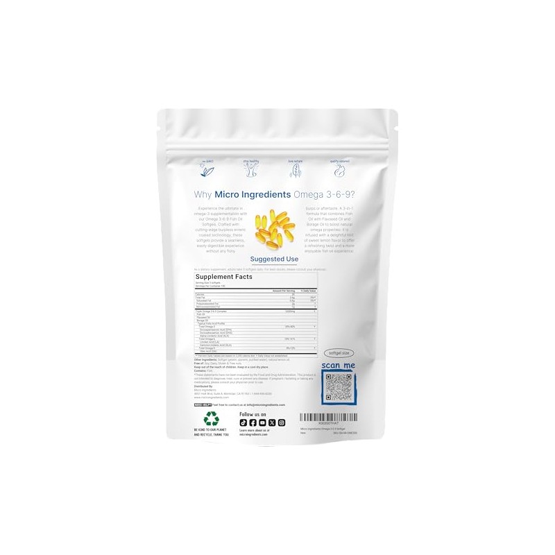 Acerca de este artículo Aceite Omega 3 6 9 de triple resistencia, tecnología de revestimiento entérico sin arbustos, 3600 mg por porción, 300 cápsulas blandas, capturado silvestre, peces de océano profundo en el mar noruego, sin mercurio. Fórmula 3 en 1, fabricada con una mezcla científica de aceite de pescado, aceite de onagra de noche y aceite de linaza. Los ácidos grasos esenciales Omega 3 6 9 proporcionan beneficios para la salud de las articulaciones, el corazón, el estado de ánimo, la piel, los ojos y el cerebro. Sin OMG, sin conservantes, sin colores ni sabores artificiales, sin soja, sin lácteos y sin gluten Probado en laboratorio y fabricado en Estados Unidos. › Ver los detalles del producto