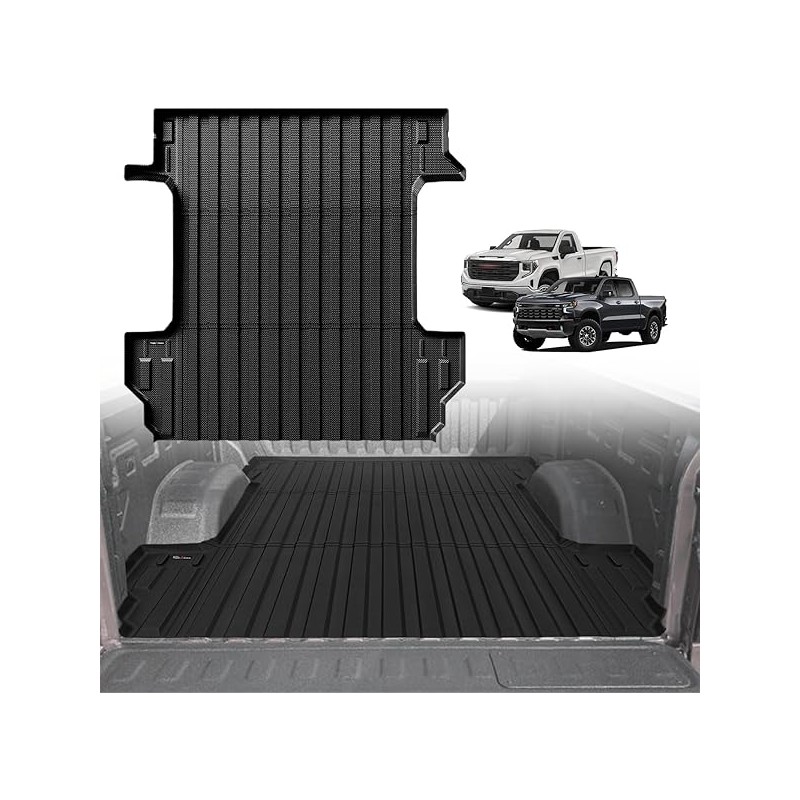 TripleAliners Truck Bed Mat Compatible with 2019-2024 2025 Chevy Silverado/GMC Sierra 1500 Accessories 5'8'' Vehicle Bed Perfectly Flush All Weather Protection TPE Heavy Duty Pickup Cargo Mat