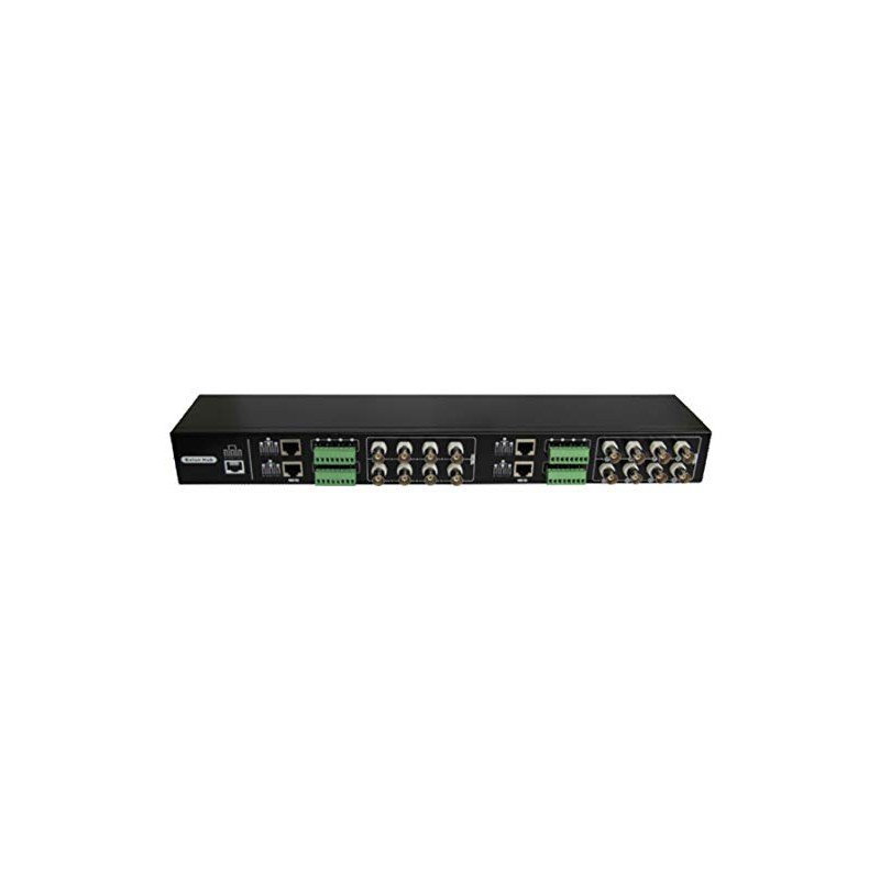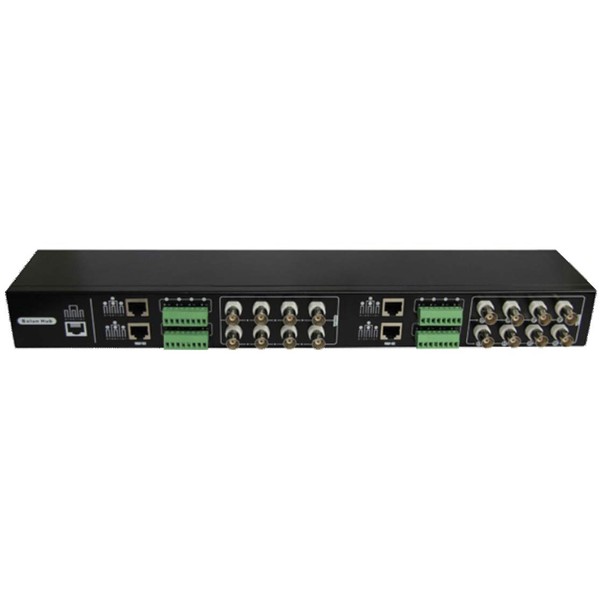 - 16-channel passive balun with RJ45 and detachable terminal blocks for UTP CAT5e/6 cables