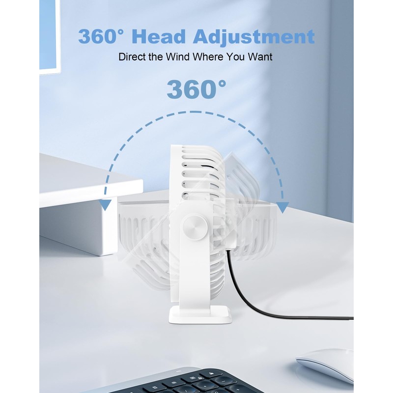 - 【360° Adjustable & Ultra Quiet】The portable fan can be adjusted 360° up and down, allows you can adjust the most comfortable angle to letting the wind goes where you need. Under low noise, the silent fan is ideal for studying, reading, working, sleeping, and so on.