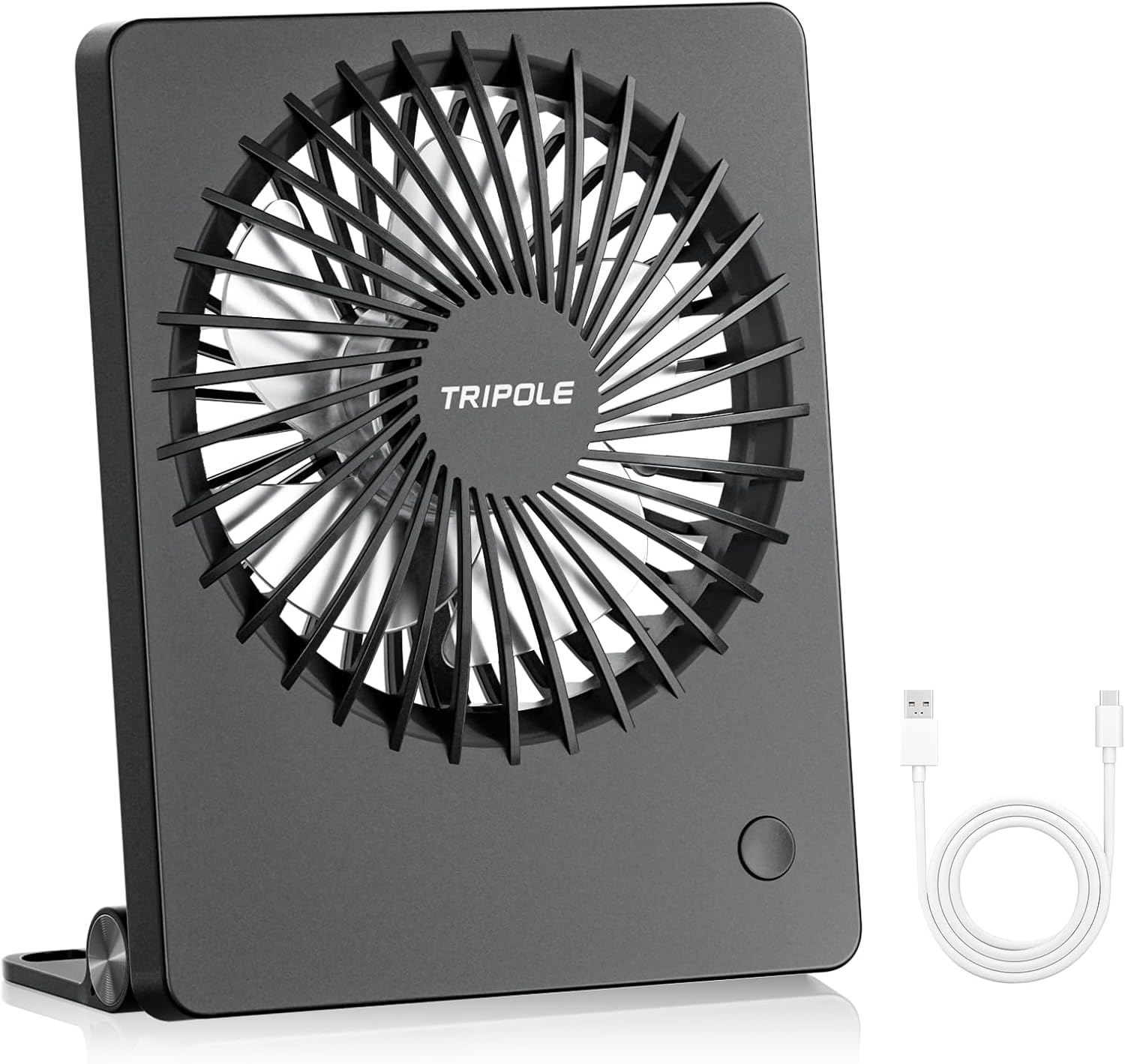 TriPole Mini Desk Fan USB Powered Portable Small Personal Mini, Black