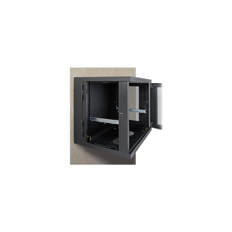 The 4POSTRAILKITWM wall-mount rack shelf kit provides extra support for heavy UPS systems, PDUs or other rack-mount components that weigh 150 pounds or less. It includes two adjustable mounting rails that attach to the mounting rails of your EIA-standard 19-inch wall-mount enclosure. Constructed using cold-rolled steel with a durable powder-coated finish, this heavy-duty rack rail kit comes with mounting hardware compatible with square-hole racks.The rails offer front-to-rear support for equipment with 17.5-inch-wide rectangular chassis. They also adjust to any setting between 14.5 and 23.5 inches and leave the rack’s front and rear mounting holes free to attach equipment. Setup is hassle-free and saves money and time on installation. Threaded-hole rack installation is also supported with user-supplied mounting hardware.