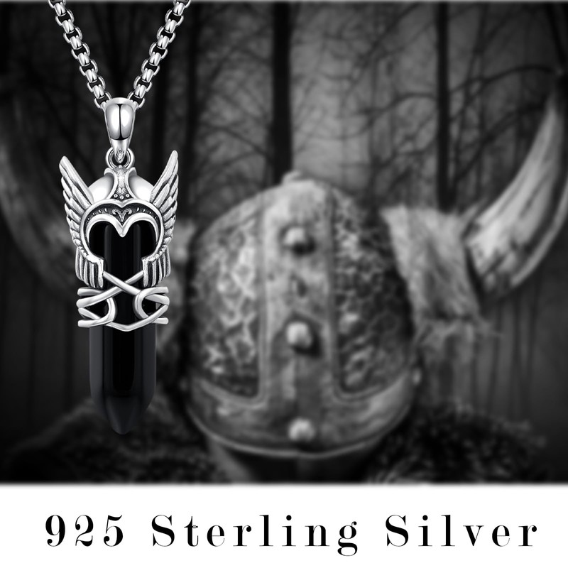 - 925 Sterling Silver Material:Viking helmet necklace is made of 925 sterling silver and black crystal column with smooth lines, delicate luster, comfortable touch, hypoallergenic material, lead-free, nickel-free and cadmium-free. Suitable for sensitive skin.