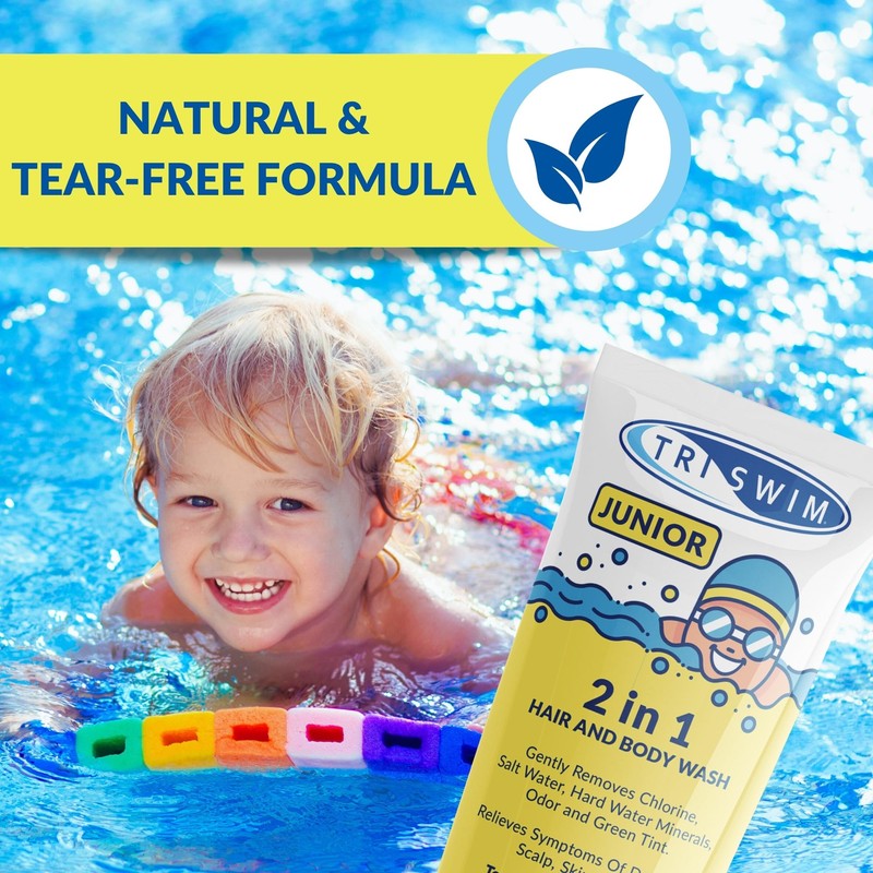 - Natural and gentle formula for delicate children's skin: discover the perfect blend of nature and care with TRISWIM Junior After Swim 2-in-1 Hair & Body Wash. Made with utmost sensitivity, our tear-free formula ensures a gentle and natural bathing experience for your child's delicate skin.