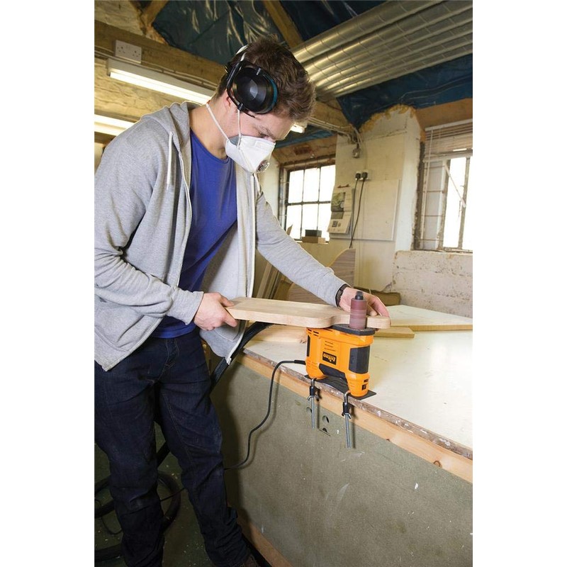 • The powerful 650W motor delivers a variable speed of 1800-3200rpm, oscillating at 50-90opm, making it an ideal workshop or worksite sander for cabinetry, sign making, sink openings, and general woodworking.