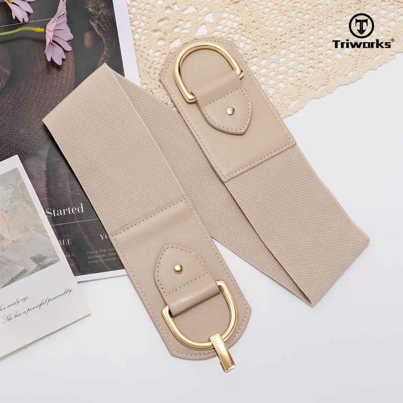 TRIWORKS - Cinturón elástico ancho para mujer, cinturón elástico para vestidos, L-caqui, Fit Waist Size 25"-26"