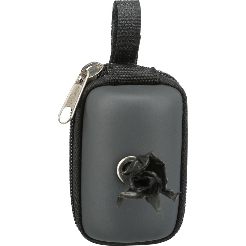 TRIXIE Kotbeutelspender mit Klettschlaufe - mit Kunstleder-Bezug - grau/schwarz - 22849