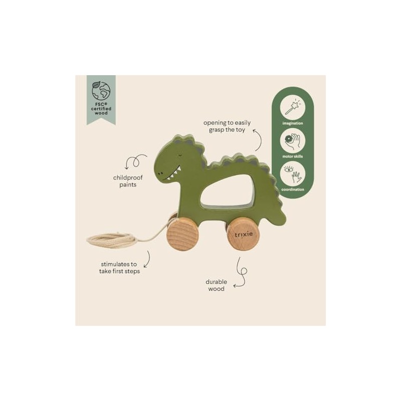 Trixie Mr. Dino Pull Along Toy - FSC-Certified Wood - 12m+ - Green