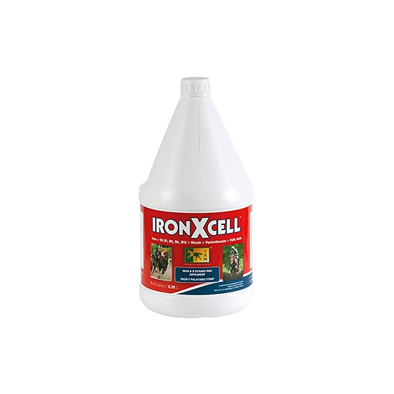 IRON X CELL is a premium Iron Enriched B vitamin syrup with added Ginseng to strengthen performance horses. IRON X CELL supplies B complex vitamins and iron for red blood cell formation and important metabolic functions relating to excercise. It is a highly palatable homogenized syrup which is fully in solution for enhanced absorption. IRON X CELL will encourage an aggressive appetite and is an excellent nutritional tonic for all horses in training and post-antibiotic treatment. For a horse in training or as a general tonic feed 2 fluid ounces daily. The one gallon size will provide a 64 day supply for one horse. FOB