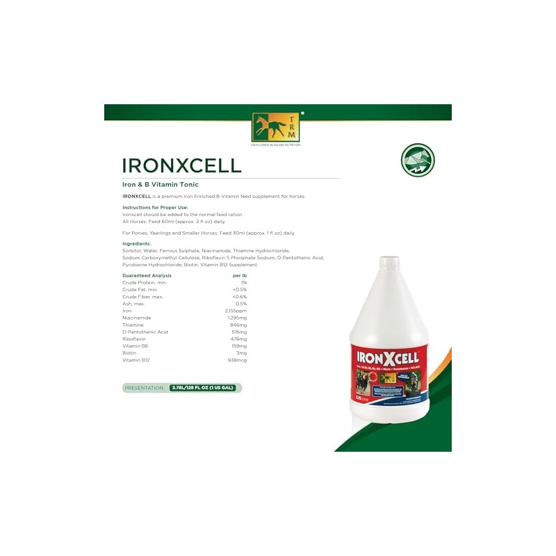 TRM IronXcell Liquid Horse Feed Supplement for Healthy Metabolism and Hindgut | Increased Energy and Performance - 126 fl oz/1 US Gal (3.78 Liter) - 126 fl oz (1 US Gal)