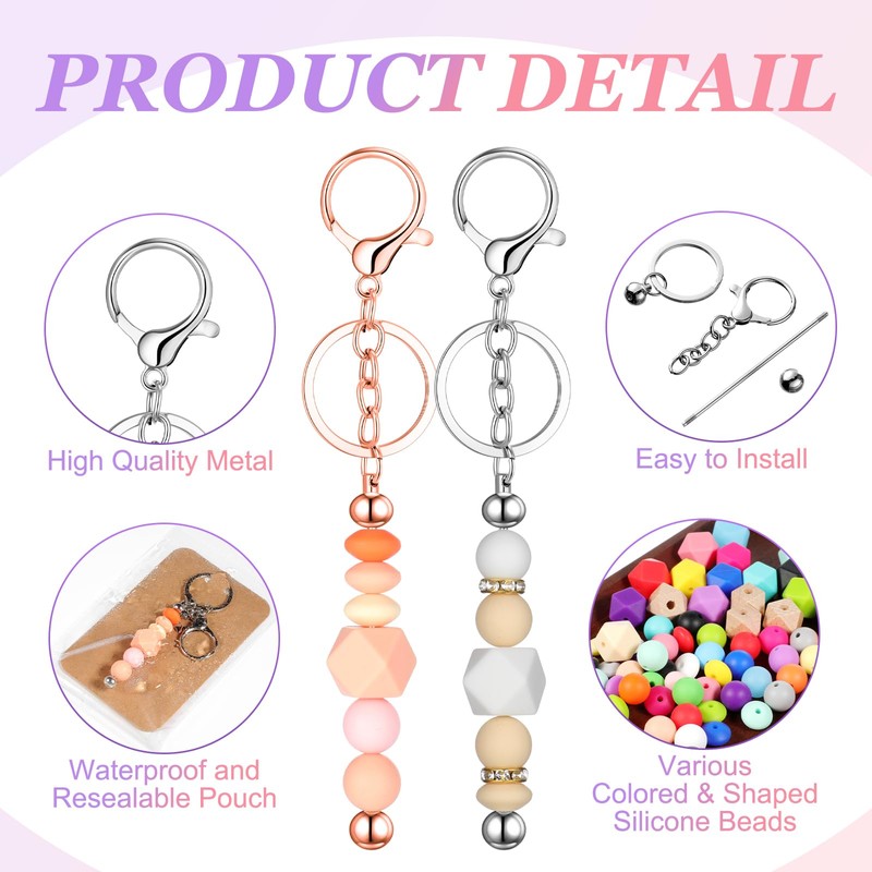 - More Creation Options: with a diverse selection of 120 colorful beads in 18 different colors, including silicone, wooden, and metal varieties, you can mix and match to create many ideal keychains in different styles such as macaroon, bohemian, and more; Whether you're making custom gifts, party favors, or trendy accessories, this versatile kit empowers you to explore your creativity and craft one-of-a-kind pieces for any occasion