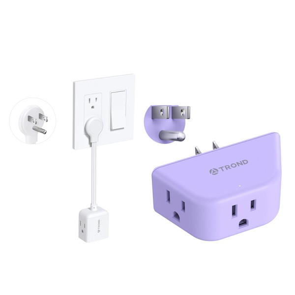 TROND Flat Outlet Extender with 6 Inch Cord + Purple Outlet Extender with 3-Prong Grounded Sockets, 3 Way Angled Outlet Adapter