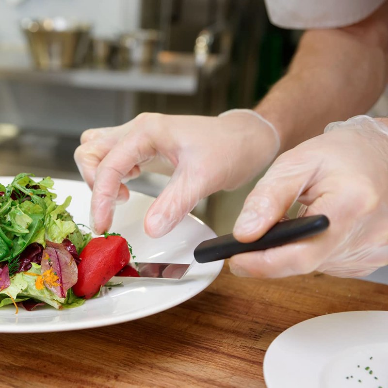 - Not made with natural rubber latex; Powder-free; Smooth finish; Formulated with food-safe virgin materials