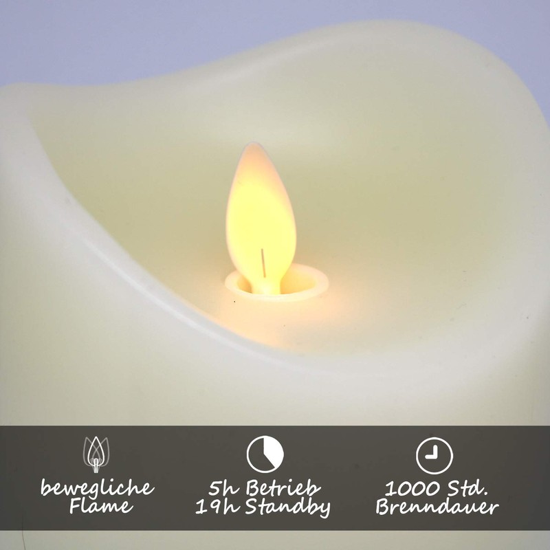 - TIMER & FERNBEDIENUNG - Beides inklusive! Fernbedienung mit 10m REICHWEITE schaltet die Echtwachs LED Kerze AN, AUS oder setzt die flammenlosen Kerzen in TIMER-MODUS: 5h Betrieb / 19h Standby