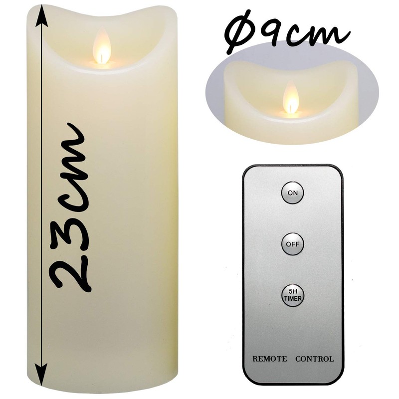 - WARM-WEI?ES LED LICHT - Flammenlose LED Echtwachskerze mit Flackerlicht hat 9 cm Durchmesser und ist 23 cm gro?. Das Gewicht ohne Batterien liegt bei 470 Gramm