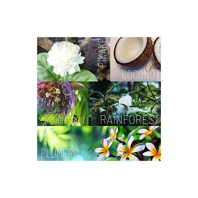 Rainforest Scent: Delicately fragrant and grassy with subtle notes of Sandalwood and Maile to evoke the sweet earthy aroma of the ancient Hawaiian rain forest.