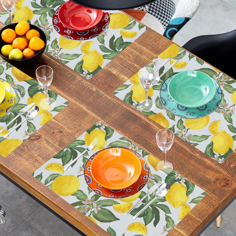 Tropical Lemon Placemats Set of 4, Placemats Dining Table Mat Set,12x18 Washable Stain Resistant Wipeable Cloth Placemat for Kitchen Buffet Parties
