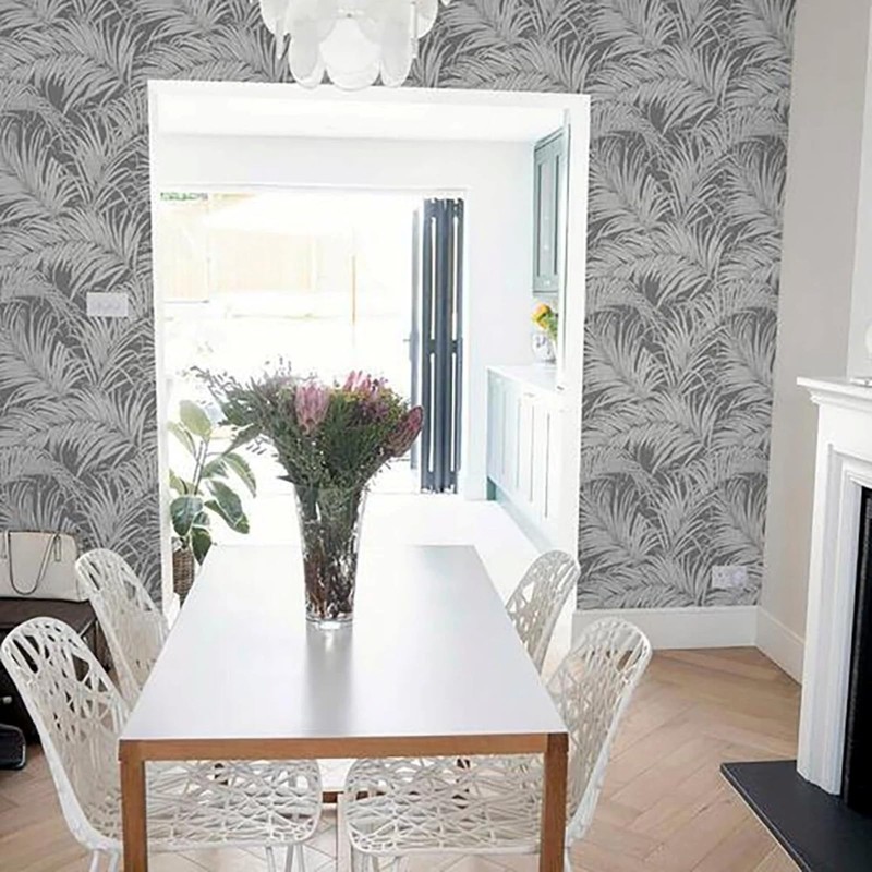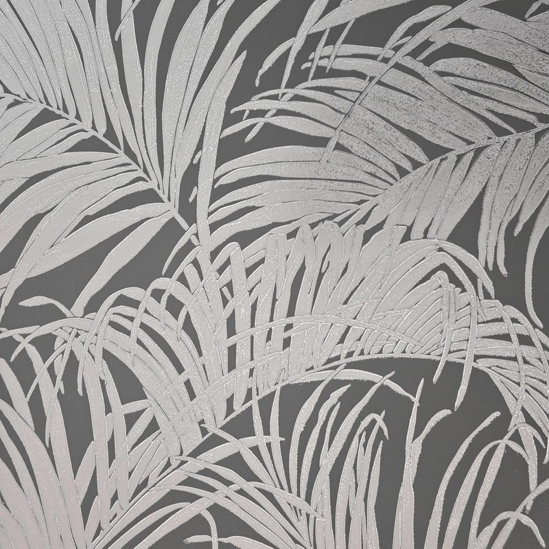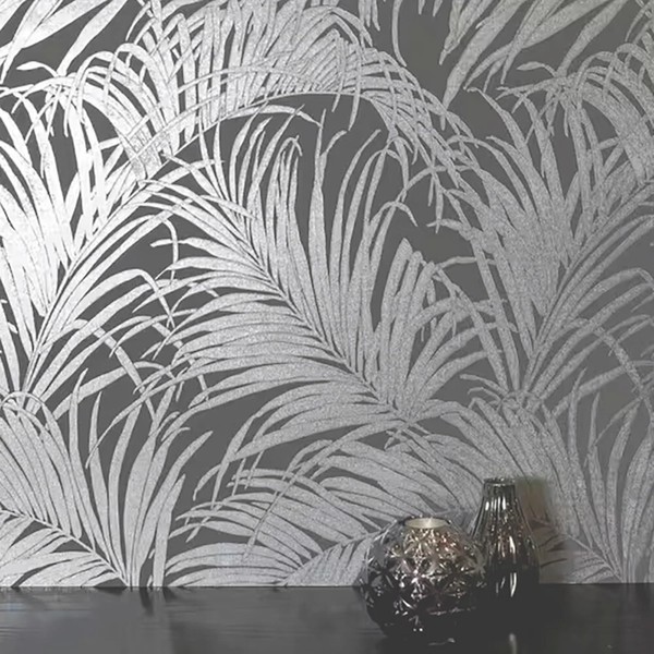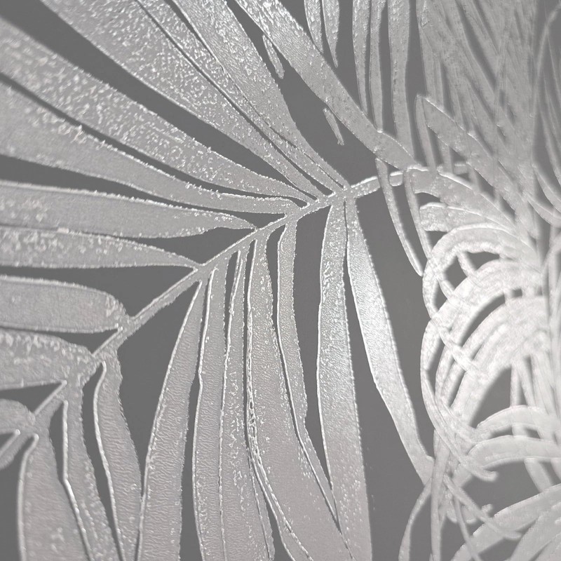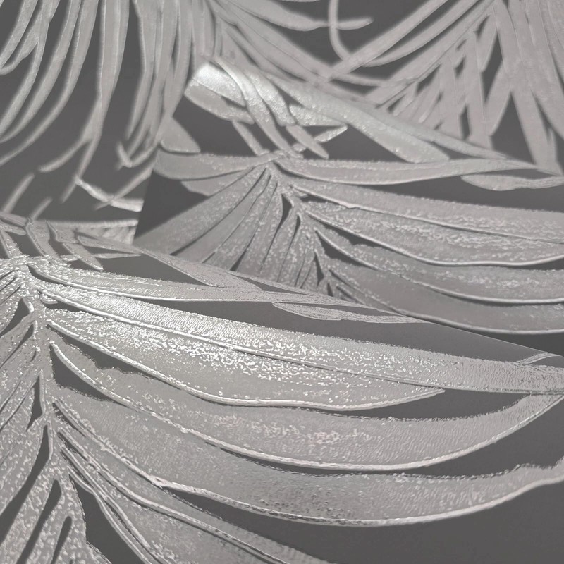 Tropical Palm Leaves Gray Silver Metallic Wallpaper Modern wallcoverings roll 3D