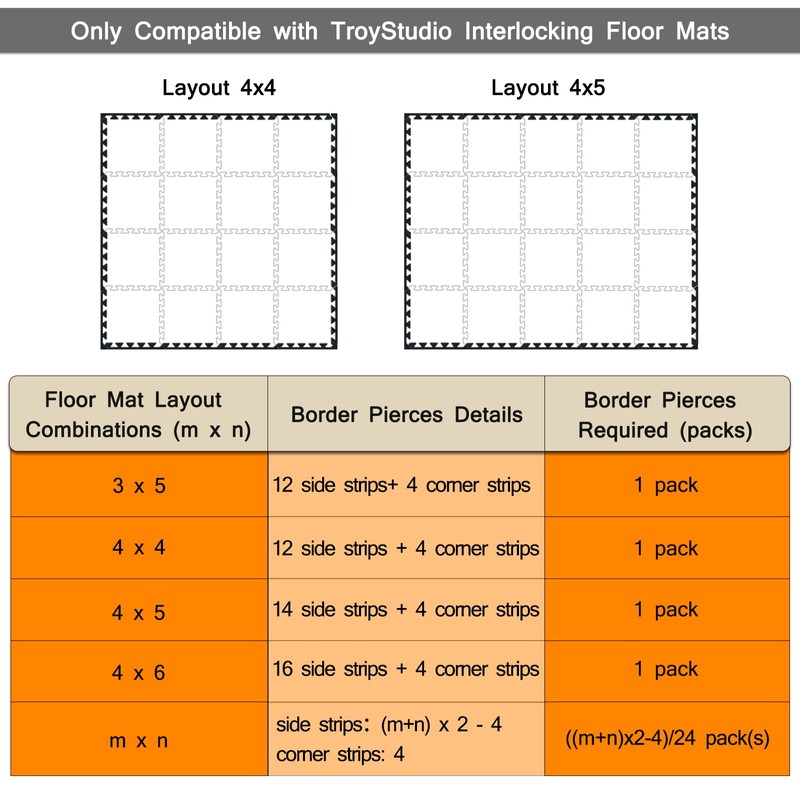 - 【QUALITY & COMPATIBILITY】Perfectly designed to match our Sound Absorbing Interlocking Floor Mats (ASIN: B0DJSB56GN). Only one set supports mat patterns of 2x5, 2x8, 2x10, 3x5, 3x8, 4x4, 4x5, 4x6. Premium high-density construction delivers excellent sound absorption and noise reduction, ideal for piano, drum, and other musical instrument practice areas