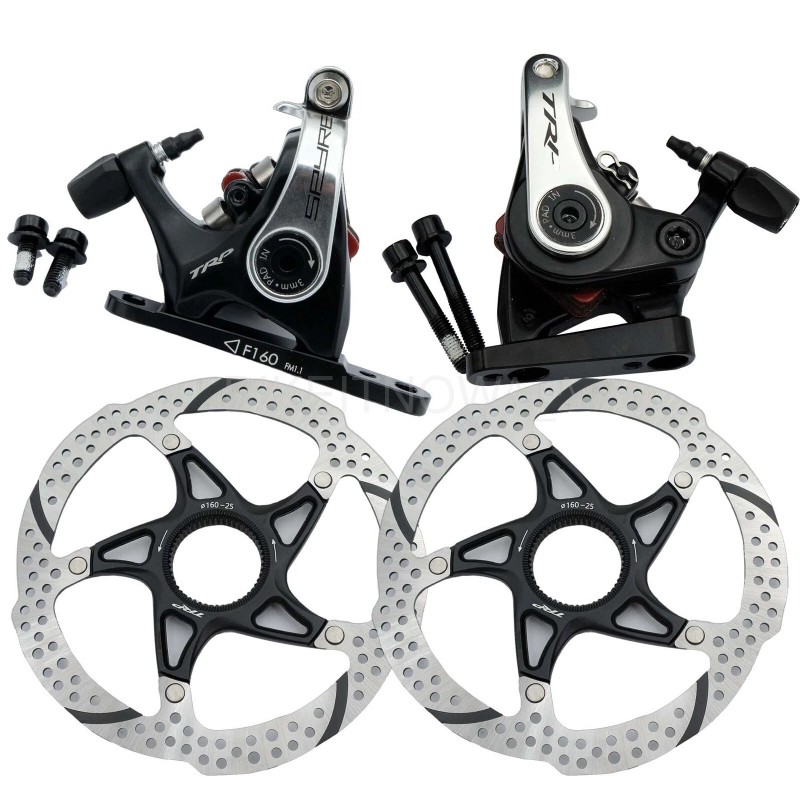 TRP Spyre Flat Mount Bike Disc Brake Set BLK/SIL+160mm Center Lock Rotors