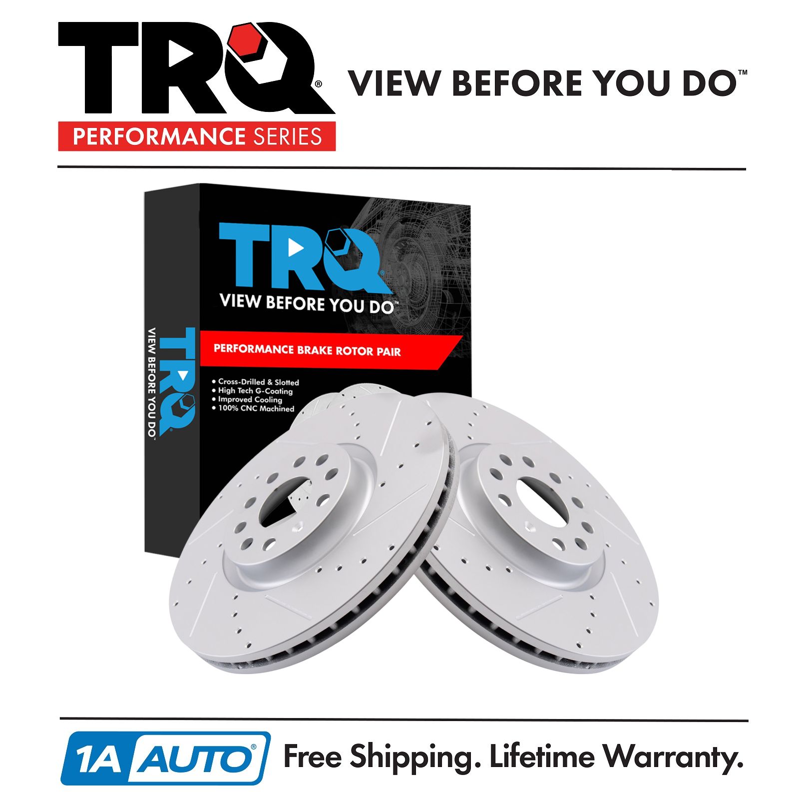 TRQ Front Brake Rotors Set Slotted X Drilled G-Coated Front Fits Volkswagen