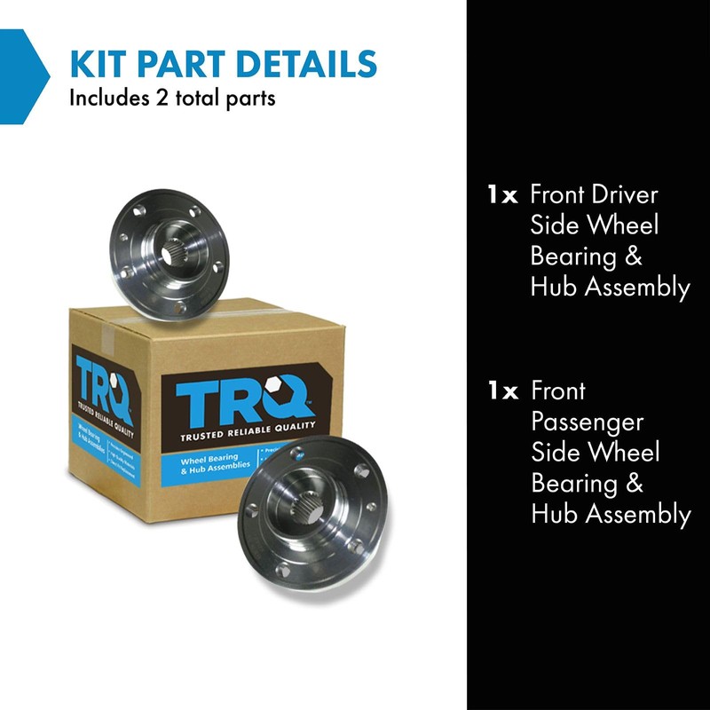 - Kit Includes: (1) Front Passenger Side Wheel Bearing & Hub Assembly; (1) Front Driver Side Wheel Bearing & Hub Assembly