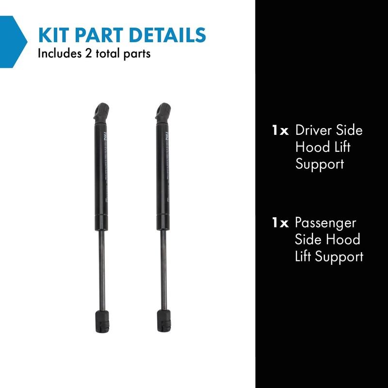 - Kit Includes:(1) Driver Side Hood Lift Support; (1) Passenger Side Hood Lift Support