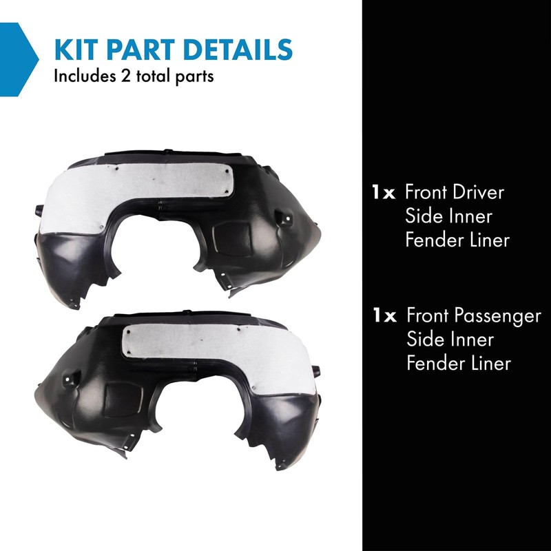 2 Piece Inner Fender Liner SetKit Includes(1) Front Driver Side Inner Fender Liner(1) Front Passenger Side Inner Fender LinerFitmentCompatible with: 2016-18 Ford Focus RS Front Driver & Passenger SideProduct AttributesQuantity: 2 PieceReference NumbersFord: G1EZ 16102 A, G1EZ 16103 A, G1EZ16102A, G1EZ16103APartslink Numbering System: FO1248182, FO1249182