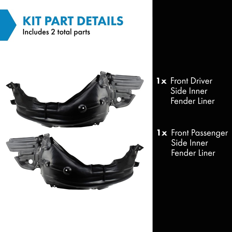 2 Piece Inner Fender Liner SetKit Includes(1) Front Driver Side Inner Fender Liner(1) Front Passenger Side Inner Fender LinerFitmentCompatible with: 2014-15 Lexus IS250 F Sport Front Driver & Passenger SideCompatible with: 2014-15 Lexus IS250 Base Model Front Driver & Passenger SideCompatible with: 2016 Lexus IS200t Front Driver & Passenger SideCompatible with: 2014-15 Lexus IS350 F Sport Front Driver & Passenger SideCompatible with: 2014-15 Lexus IS350 Base Model Front Driver & Passenger SideCompatible with: 2016 Lexus IS300 Front Driver & Passenger SideCompatible with: 2016 Lexus IS350 Front Driver & Passenger SideProduct AttributesQuantity: 2 PieceReference NumbersLexus: 53805-53070, 5380553070, 53806-53070, 5380653070Partslink Numbering System: LX1248126, LX1249126