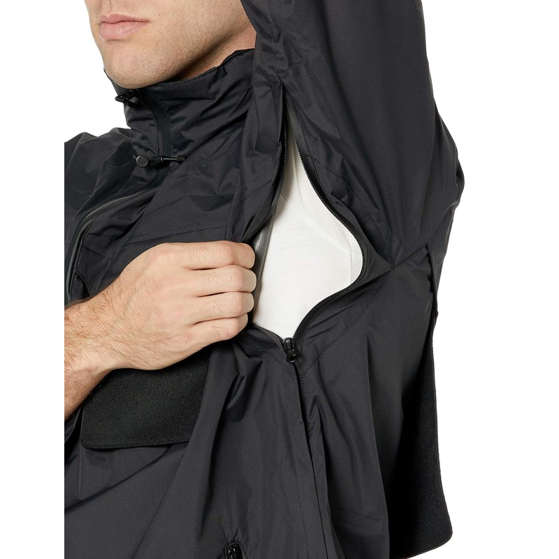 - COMFORT FIT: Comfortable rain jacket with waist adjustment with access in front hand pocket and gusseted underarms; Back yoke with cape opening and removable ID panel