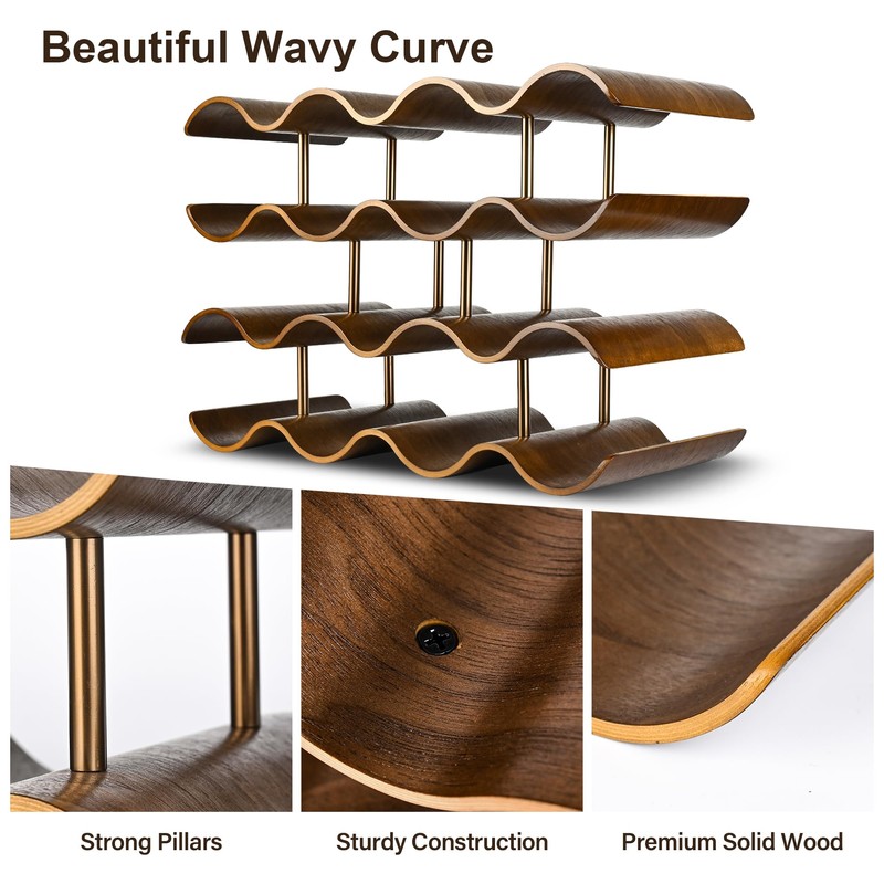 - Elegant Styling - The solid wood material is pressed at high temperature to form graceful wavy shape, which is stylish and elegant. This design also keeps the wine securely in the trough, preventing the bottle from rolling, both aesthetic and functional.