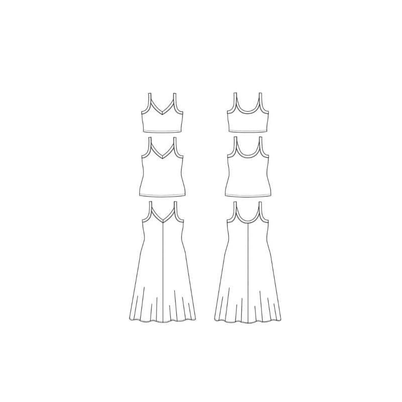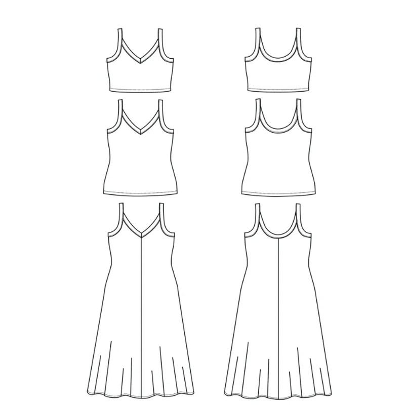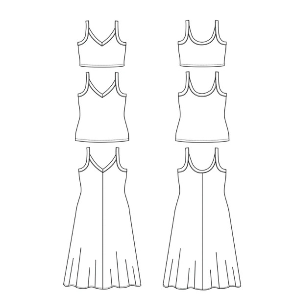 - Views A and B are tank tops, view C is a fit and flare tank dress with a center front and back seam.