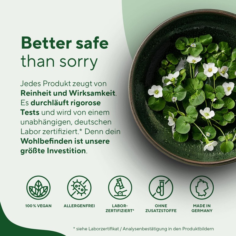 - ???? SORGFALT, AUF DIE DU Z?HLEN KANNST Als deutsches Unternehmen mit h?chsten Qualit?tsstandards setzen wir auf hochwertige Zutaten und strenge Kontrollen. Trotz reinster Verarbeitung zertifiziert* (siehe Laborzertifikat/ Analysebest?tigung in den Produktbildern) ein unabh?ngiges deutsches Labor Reinheit und Wirkstoffgehalt jeder Charge. Der Rohstoff wird in Deutschland gem?? ISO- und HACCP-Standards abgefllt.