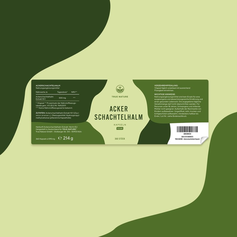 TRUE NATURE Field Horsetail - 360 Capsules - 500 mg Horsetail Extract - 10:1 High Dose - 1-Year Supply - Equisetum arvense - German Production - Vegan - True Nature