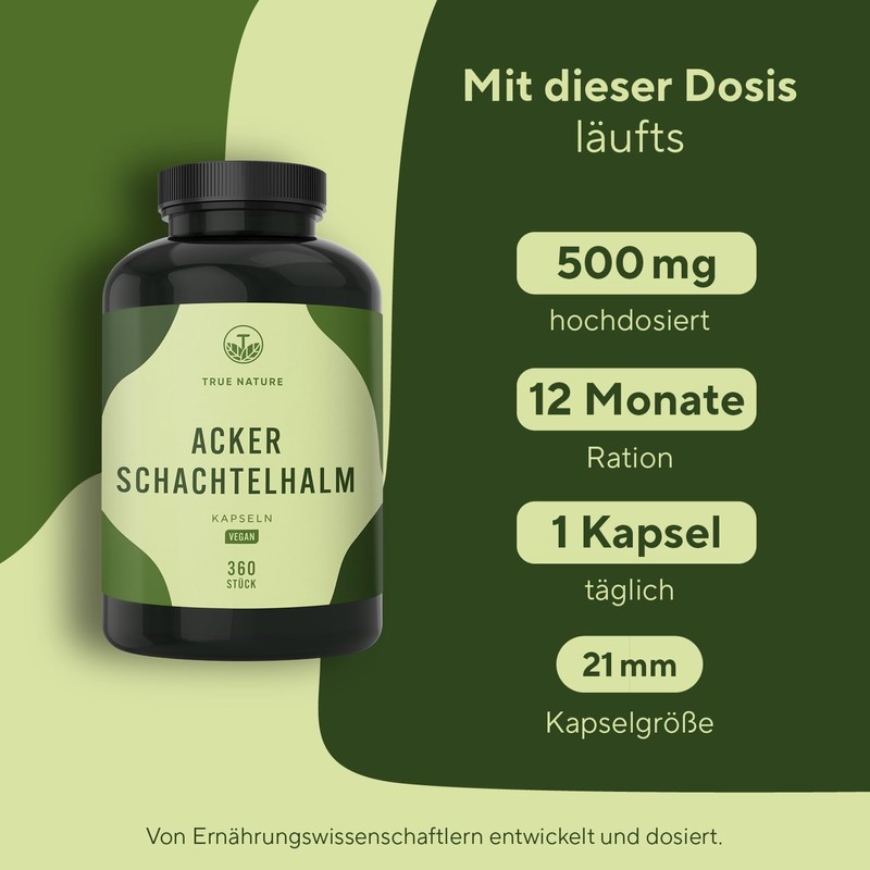 - XXL PACKUNG - Die 360 Ackerschachtelhalm-Kapseln reichen fr 12 Monate bei t?glicher Einnahme. Eine Tagesportion von 1 Kapsel enth?lt 500mg hochdosierten Ackerschachtelhalm als 10:1 Extrakt. Damit bist du ideal versorgt.