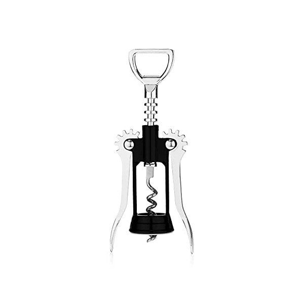 • WINGED WINE BOTTLE OPENER – This black and silver winged corkscrew with self-centering worm and built-in bottle opener makes wine service a breeze. Never struggle with unwieldy wine keys again. Perfect for dinner parties or cocktail hour!